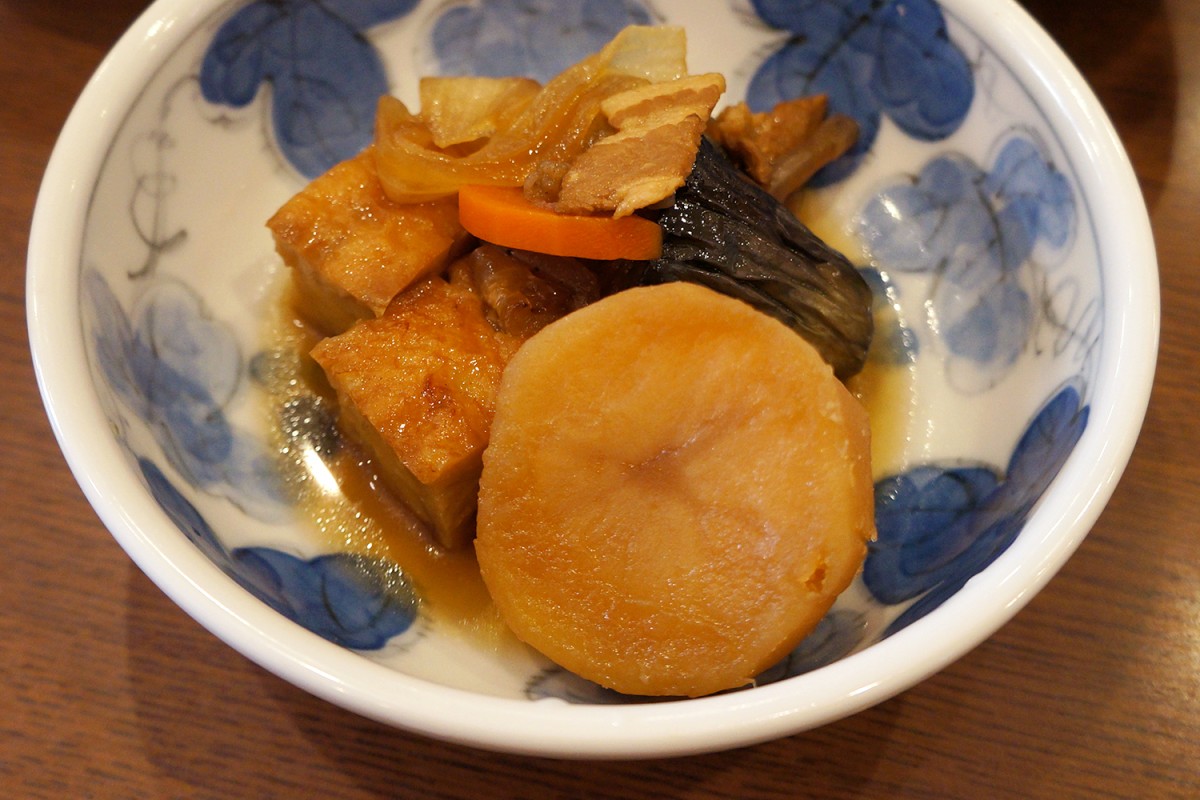 濃いめの甘辛味に煮られたじゃがいも、さつまあげ、なす。どれもじわ〜んと脳と胃に染み渡りながら、寝ぼけた体をしゃきっと起動させてくれるような美味しさだ。