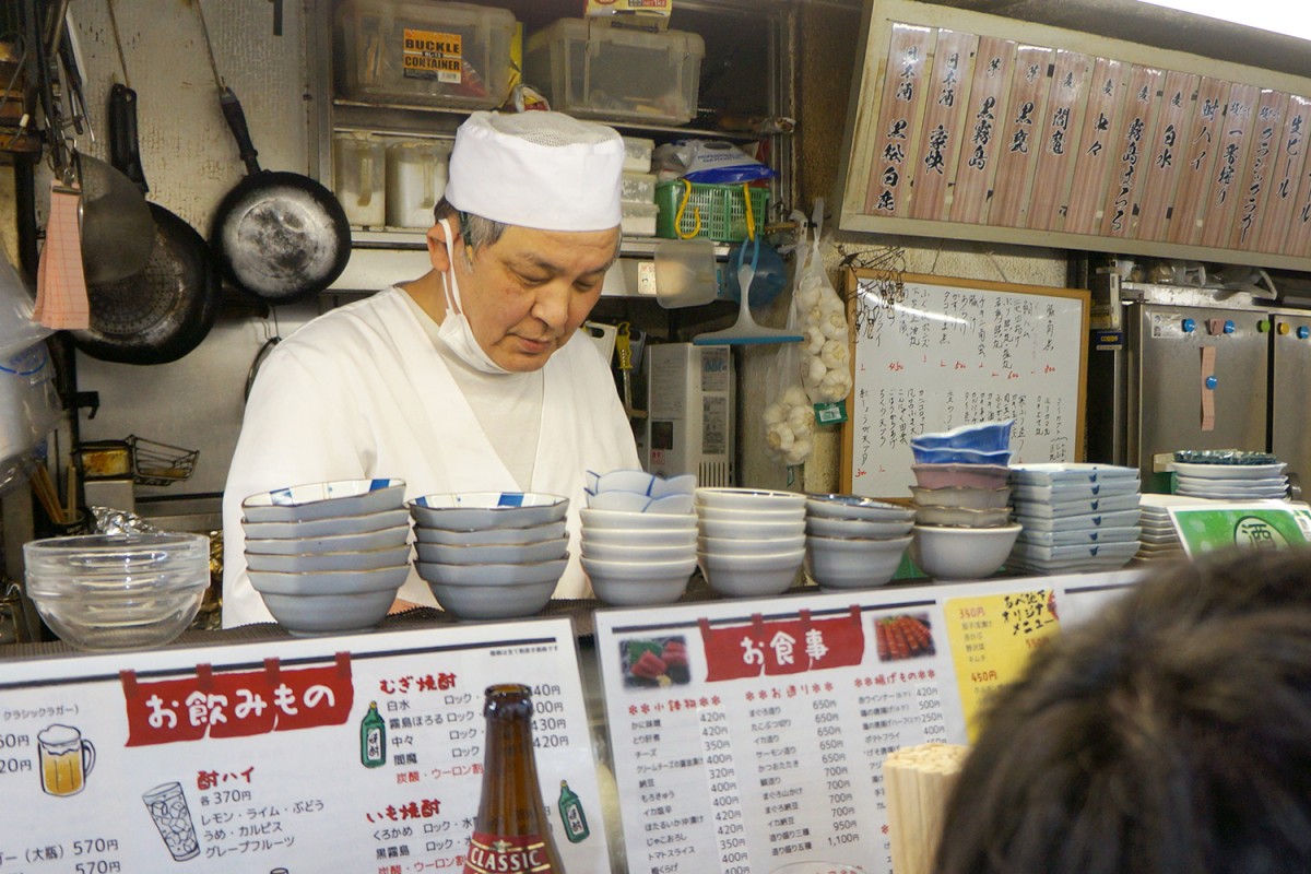 酒も料理も手頃でうまいが、ここの魅力はなんと言ってもご主人のキャラクター。常連さんたちとの関西弁での掛け合いは、まさに漫才だ。