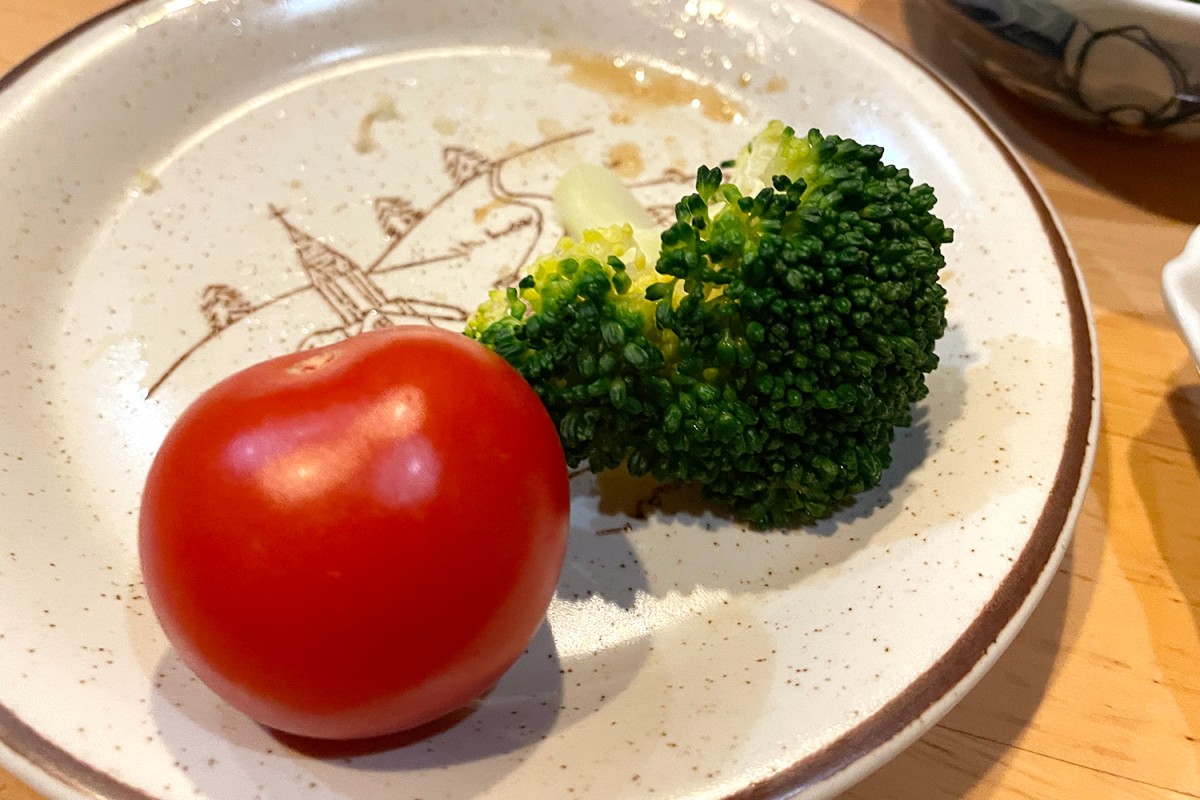 第1弾を食べ終わり、続いて出してもらったのがきんぴらと生野菜。それらをつまみにチューハイを2杯おかわりし、1時間くらいゆっくりと過ごして、お会計は3,000円だった。