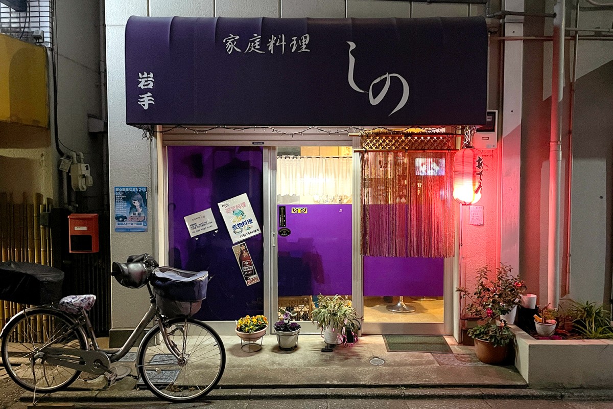 すると1軒の飲み屋に目が留まる。「家庭料理 しの」。窓からちらりと覗いてみると、カウンターが5席ほどの小さな店だ。先客はいないようで、女将さんと思われる方がそこに座って、頭上のTVを見ている。映っているのは「名探偵コナン」のようだ。なんという舞台の整いっぷりだろう。