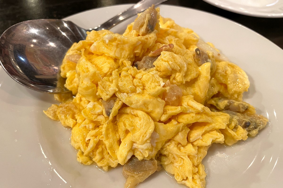 枝豆の紹興酒漬けは、ほとんど塩気が利いていないのが不思議な味わいだが、卓上の醤油をつけながら食べるといいつまみになる。発見だったのは海鮮玉子で、たぶん冷凍のシーフードミックスを玉子焼きに加えただけなんだけど、これがとてもいい。こんど家でもまねしてみることにしよう。