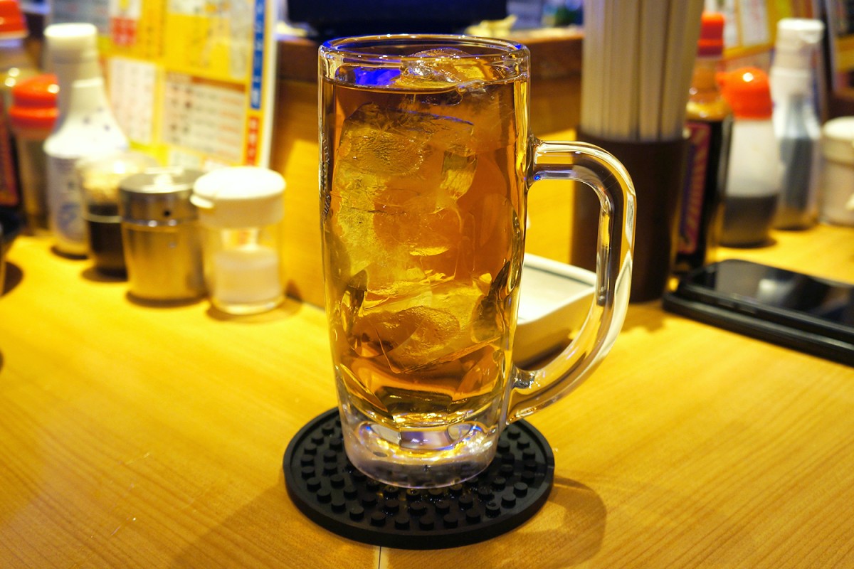 おかわりは「紅茶ハイ(芋)」(350円)。紅茶ハイも芋焼酎も好物だが、合わせたものは初めて飲むかもしれず、しかしこれがうまい。