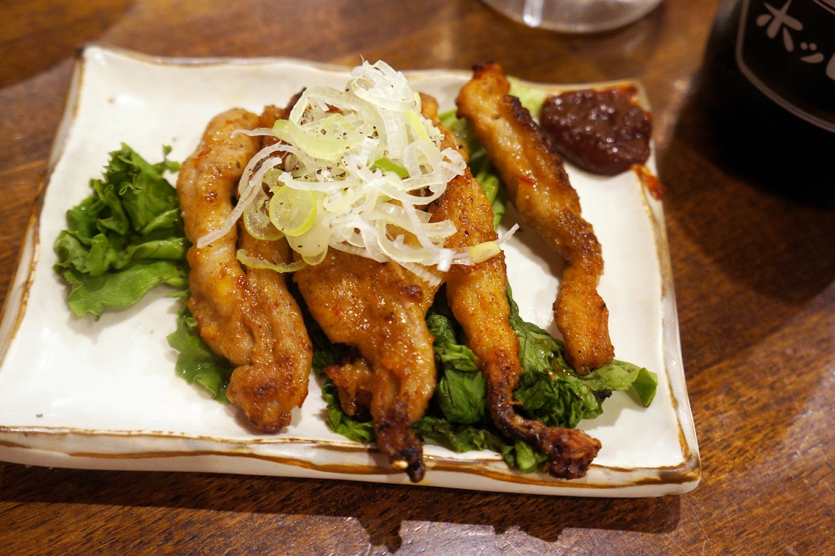 ぼんじりポテトフライは、まさにそのままのメニューだった。鶏の脂とポテトがあいまってジャンクな美味しさ。せせり網焼きは、もつ焼きが名物な店だけあって間違いなし。