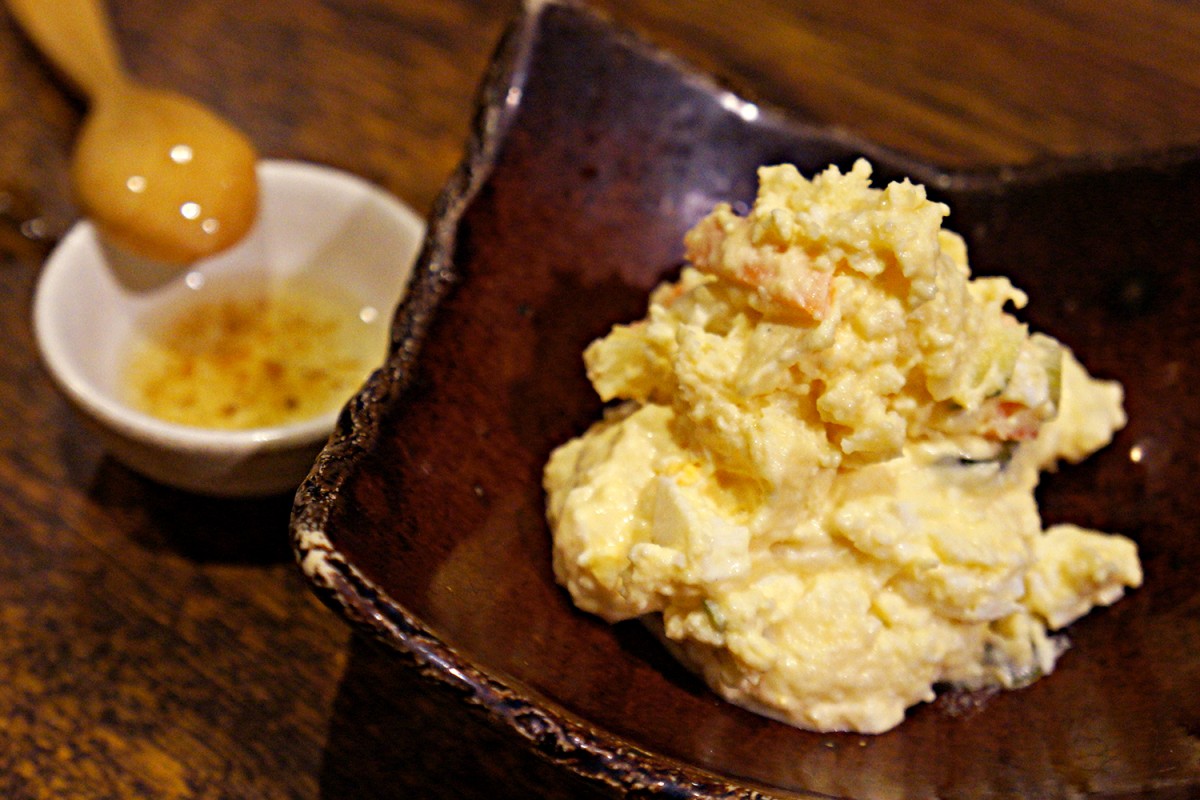 まずは「ぬか漬け入りポテトサラダ(へしこソース付き)」(660円)と「温かい白子ポン酢」(1,320円)を。