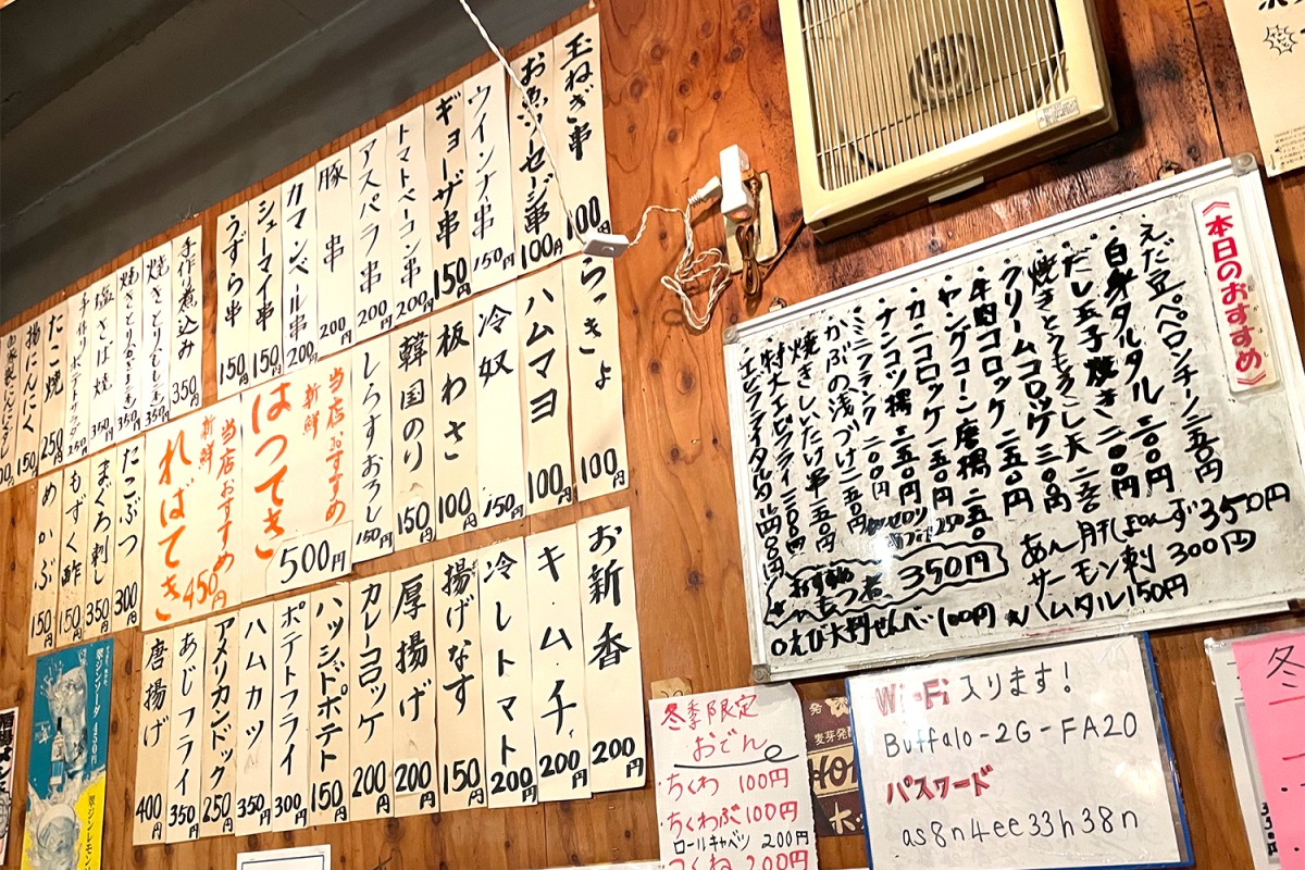 この店の特徴は、なんといっても値段が安いこと。100円メニューも豊富にある。そういえば、僕が酒場に関する記事をなんとなく書きはじめた20年くらい前は、こういう価格帯の店がもっとあったよなぁと、なんだかノスタルジーを感じてしまった。